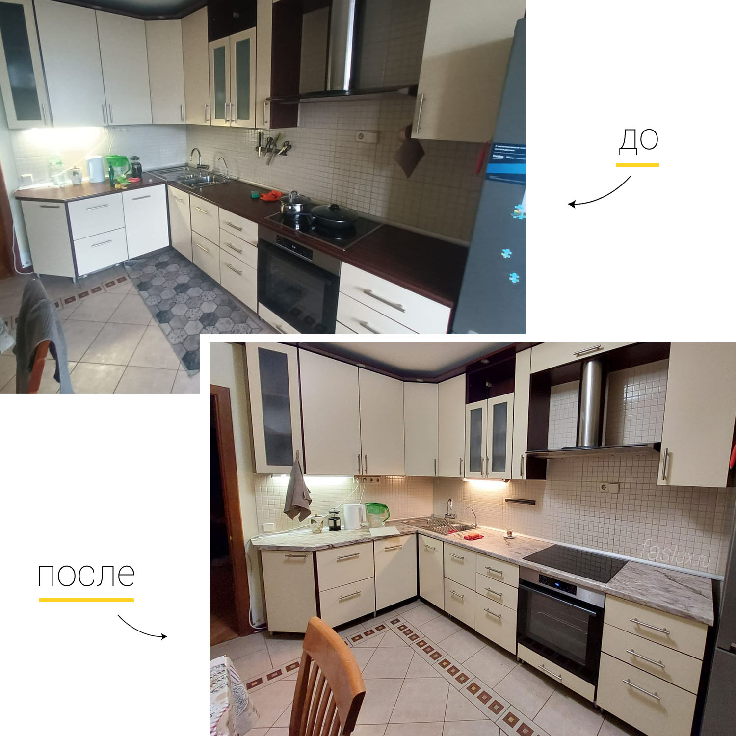 Обновим вашу кухню путем замены фасадов и столешницы