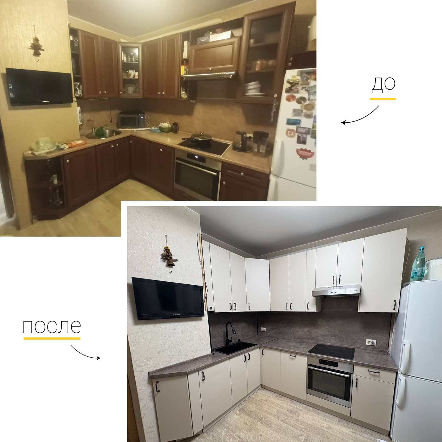 Заменили и установили фасады ДСП в цвете Сатин 7045 SU