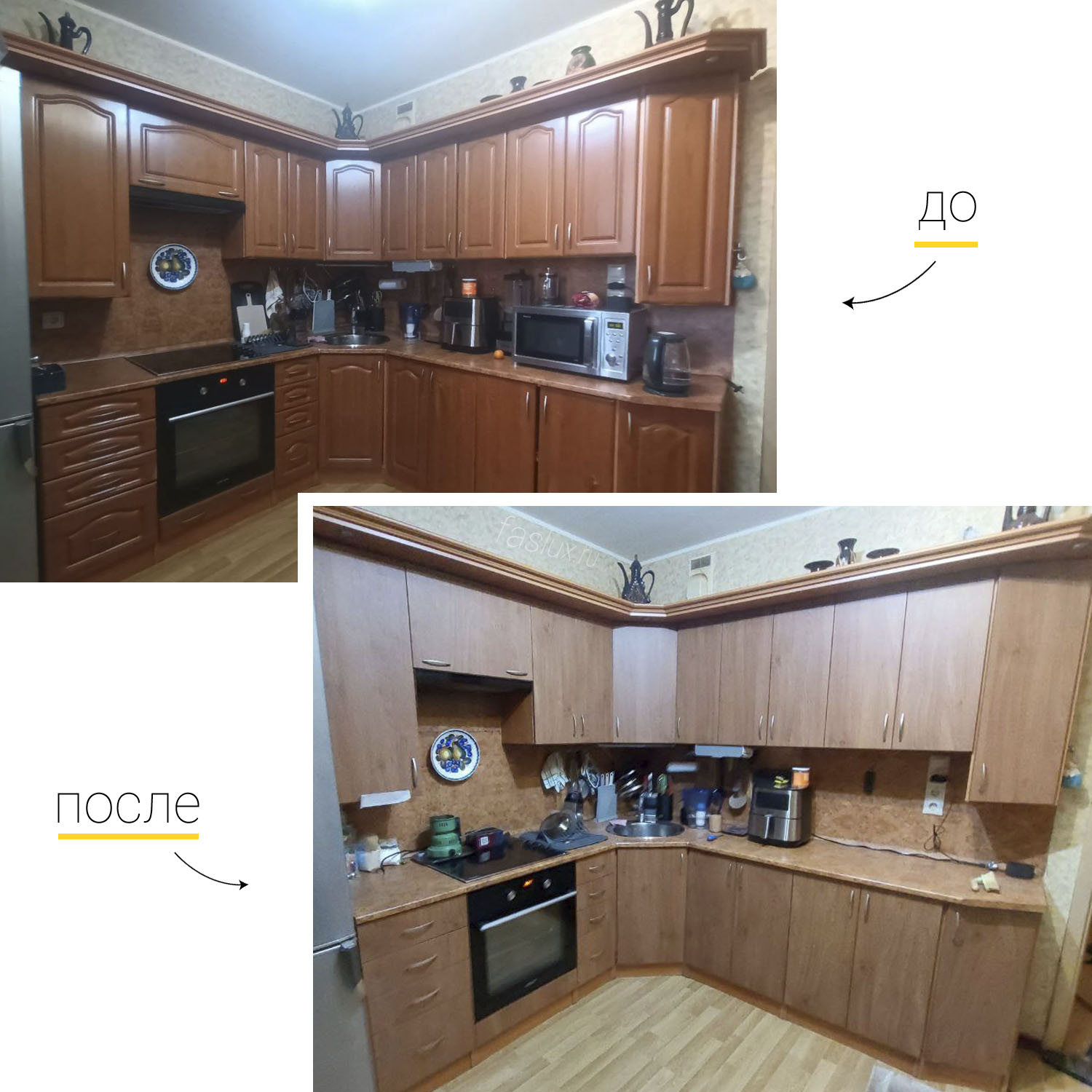 Заменили и установили фасады ДСП в цвете Egger H3398 ST12 Дуб Кендал коньяк