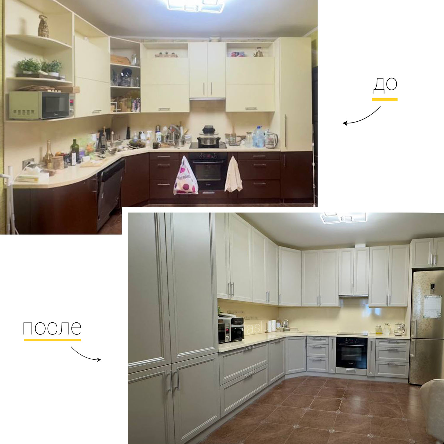 Заменили и установили фасады МДФ с фрезеровкой ТЕЙЛОР в пленке ПВХ FRS 1847-2-L Амарок (верхние) и ZB 849-2 Грей-беж (нижние)