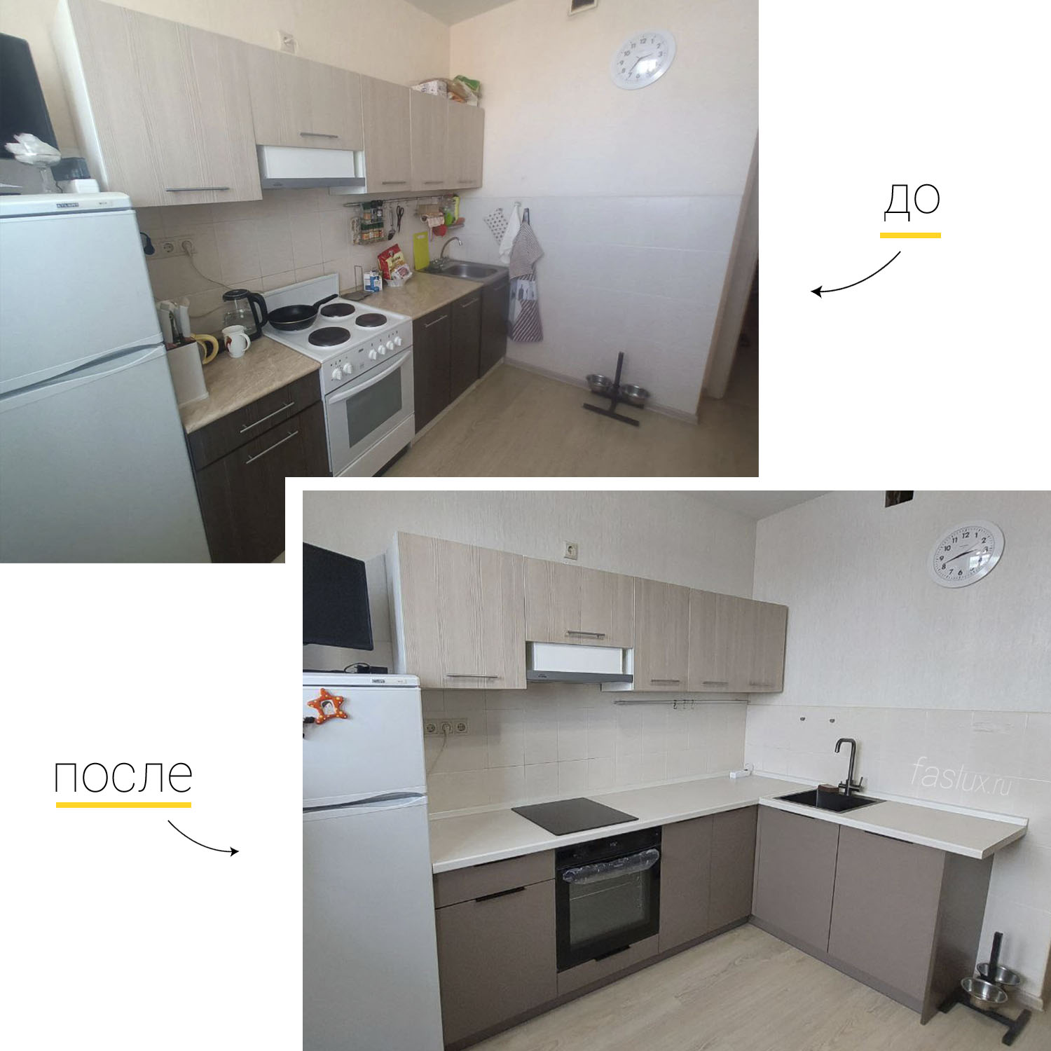 Заменили и установили фасады ДСП в цвете 7166 BS Латте
