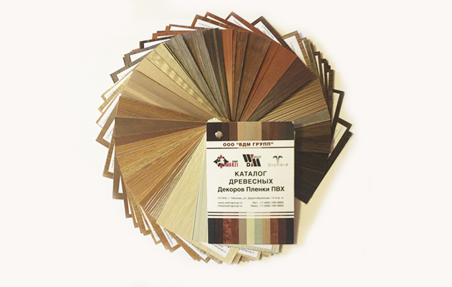 Каталог декоров пленки ПВХ от ВДМ групп. Более 100 цветов.